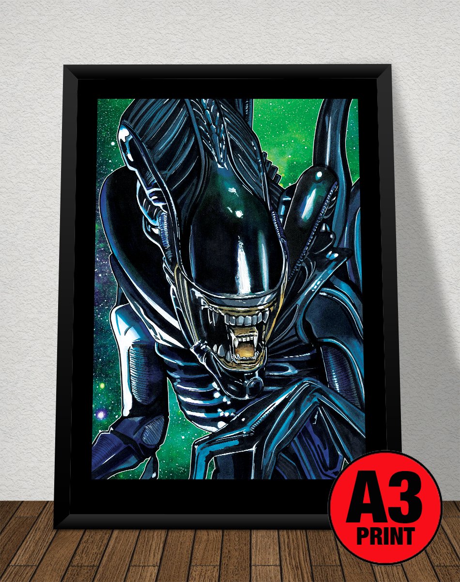Movie Art 'Alien Xenomorph' A3 (16' x 12') Signed Print Comic Style Illustration