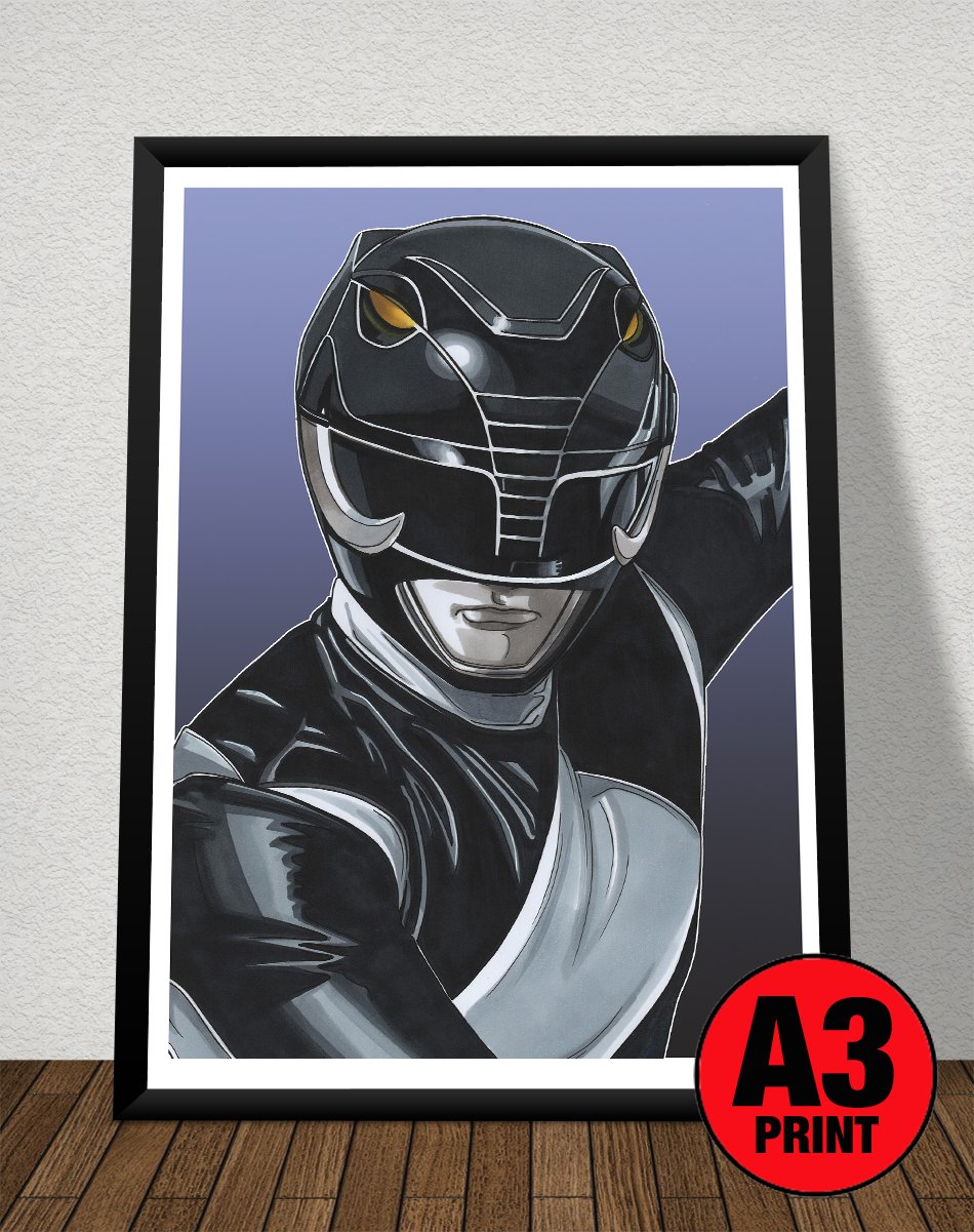 Power Rangers 'Black Ranger' A3 (16" x 12") Signed Print Comic Style Illustration