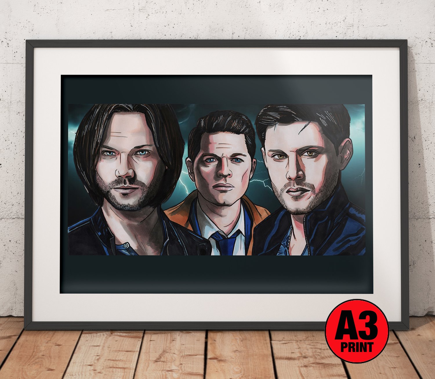 Supernatural 'Sam, Dean & Castiel' A3 (16" x 12") Signed Print Comic Style Illustration