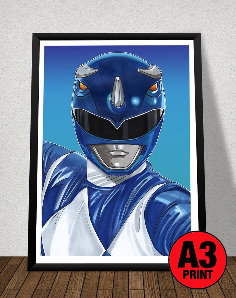 Power Rangers 'Blue Ranger' A3 (16" x 12") Signed Print Comic Style Illustration£10.00